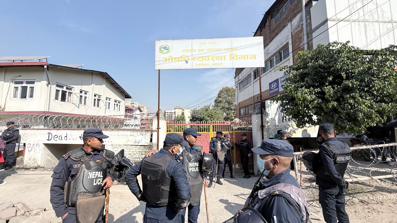 औषधि व्यवस्था विभाग परिसरमा कडा सुरक्षा, व्यवसायी प्रवेश निषेध