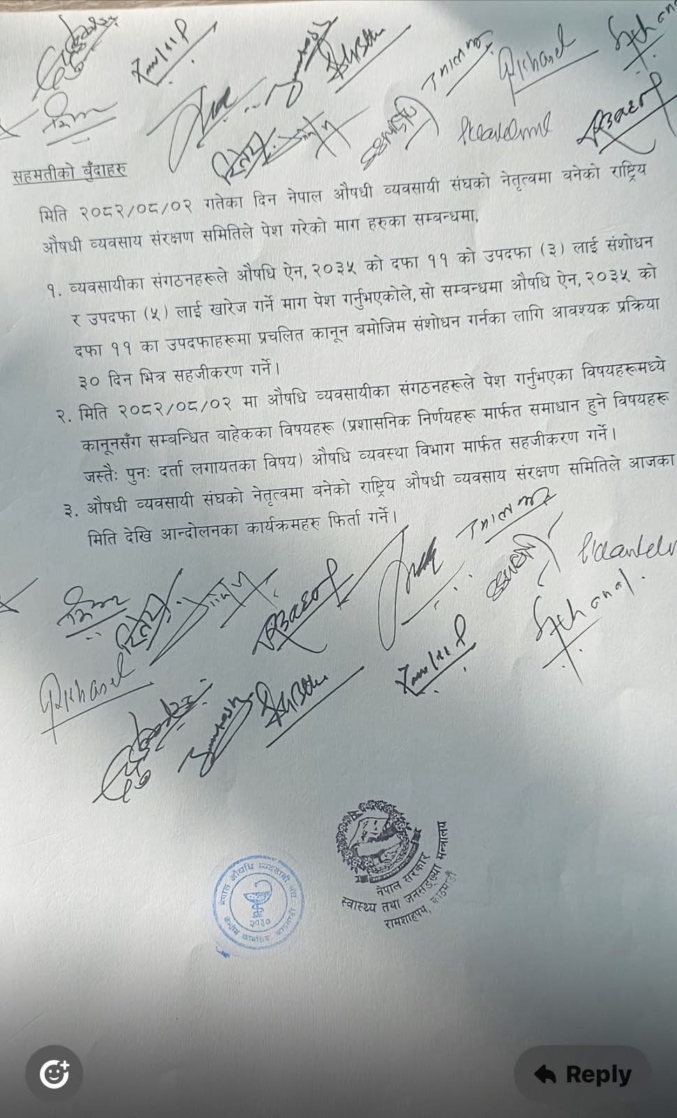 औषधि ऐनको संशोधनबारे त्रिपक्षीय समझदारी, व्यवसायीको आन्दोलन स्थगित