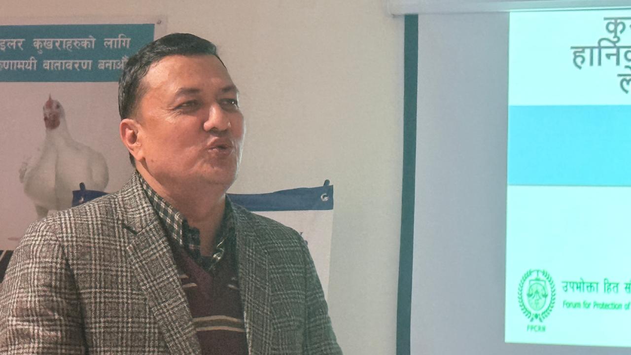 संविधानको धारा ४४ ले उपभोक्ता हित सुनिश्चित गरे पनि व्यवहारमा खाद्य गुणस्तर र सुरक्षाको प्रत्याभूति हुन नसकेको भन्दै उनले एन्टिबायोटिक नियमन र गुणस्तर सुनिश्चिततामा सरकारको प्रभावकारी भूमिका आवश्यक रहेको बताए।
